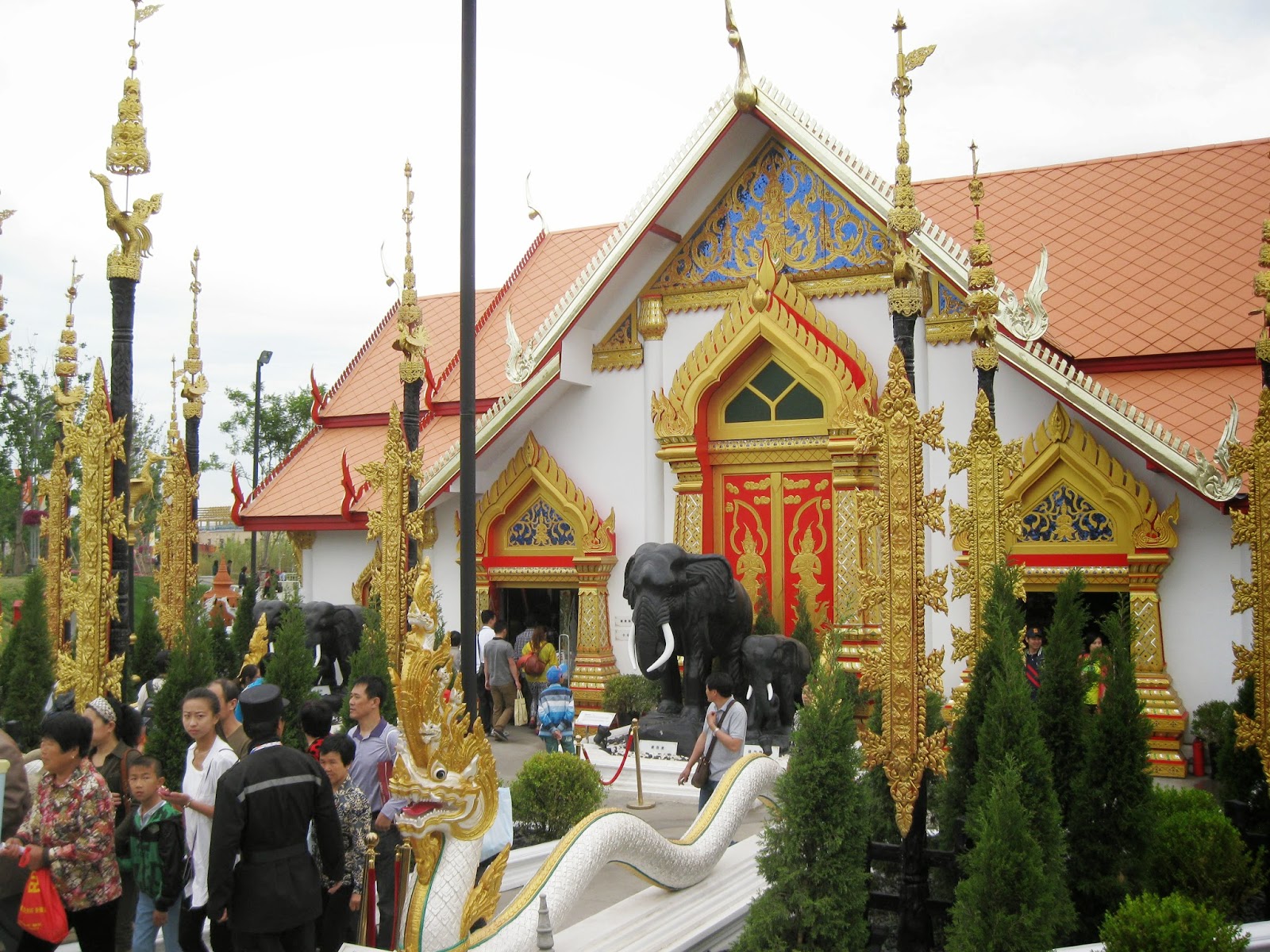 We are on a big open square which is over the parking and road area. He wanted Wayne to fly this kite but the wind was not co-operating. In the background, you can see one of the facilities. The middle one is shaped like the Lotus plant with surrounding structures like Willow trees.